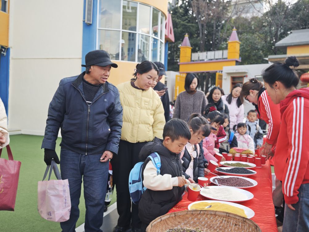 在丽江市新苗幼儿园,祝福满满的“萌娃摸彩,跨栏纳福”春季开学仪式正在进行。在贴着“薯”你最棒、天之“椒”子、“茄”而不舍的蔬菜前,小朋友摸摸这个、看看那个,开心迎接新学期。