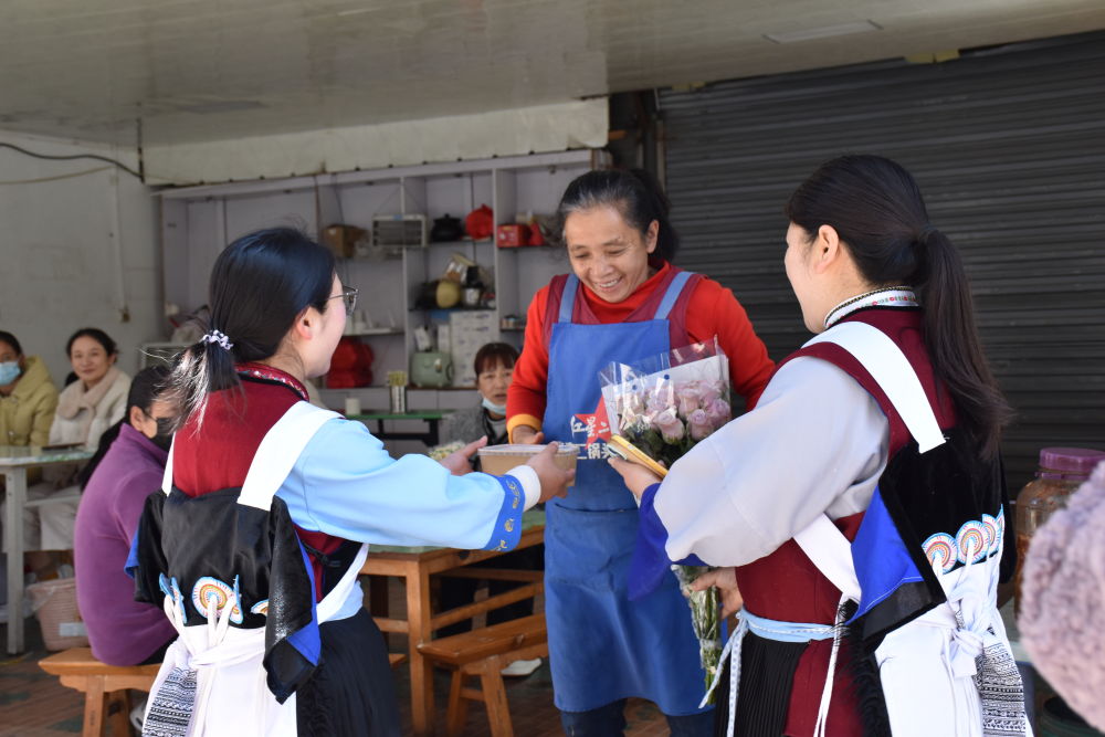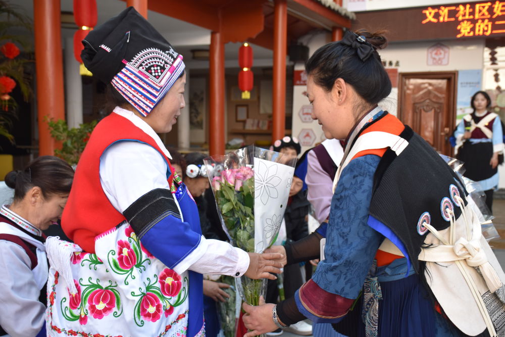 社区向妇女代表们献上节日祝福。(丽江融媒记者 杨四娟 摄)