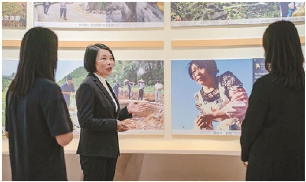 谢成芬(中)在西畴精神展览馆担任讲解员。