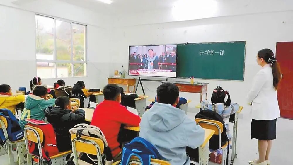 新学期伊始,文山壮族苗族自治州广南县落松地小学师生共同收看“代表通道”实况转播,通过屏幕,听农加贵老师讲自己的故事,上了一堂生动的思政课。孩子们聆听了农老师的话语后,纷纷表示要勤学奋进,成长为建设国家、回报家乡的有用之才。