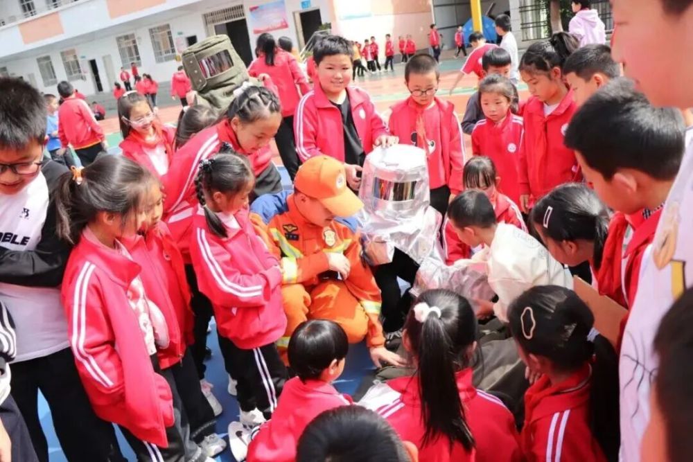 在曲靖市,麒麟区消防救援局的消防指战员走进小学校园,为师生们上了一堂生动、有趣、实用的“消防安全第一课”。互动体验环节,学生们还穿上厚重的消防灭火防护服,戴上救援头盔,亲身体验了一把当“小小消防员”的感觉。