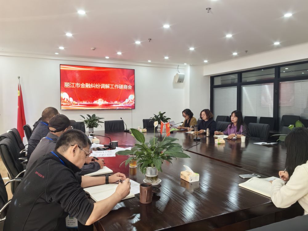 丽江金融监管分局与云南省丽江市中级人民法院、丽江市司法局、丽江市银行保险业协会会商多元解纷工作。(丽江金融监管分局供图)