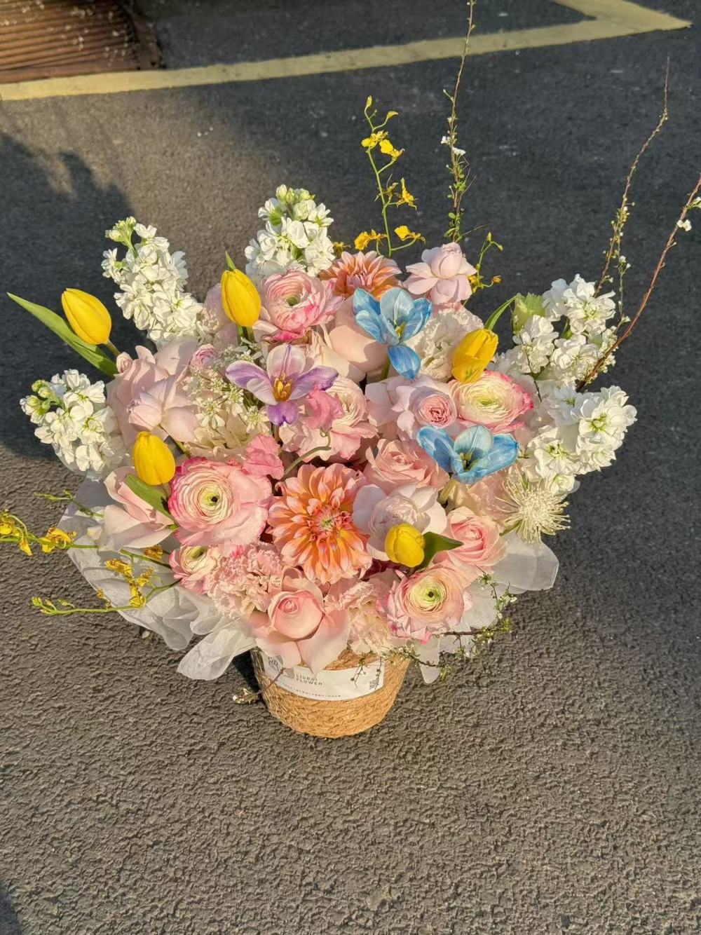 值得关注的是,今年鲜花消费的审美与理念发生了明显转变。告别千篇一律的传统搭配,亮色系撞色、混搭风花束备受年轻消费者追捧,粉绿、橙黄、蓝粉等色彩组合打破沉闷,自带春日氛围感。同时,“万物皆可花束”的创意消费兴起,鲜花与奶茶、水果、零食的组合套餐,以及差异化定制花束,精准契合年轻群体追求个性、拒绝雷同的需求。