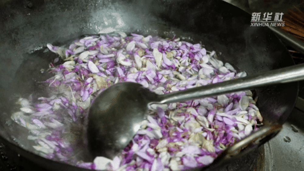 走进西盟县勐梭镇的农家小院,一阵阵花香与食物香中,人们正忙着制作一桌丰盛的“鲜花宴”。炒紫藤花、白花稀饭、腊肉炒老瓦花、白花煮鸡、油炸白花、石斛花蒸蛋、干板菜白花豆米汤……一道道以鲜花为主要食材的菜肴色香味俱全,令人垂涎欲滴。