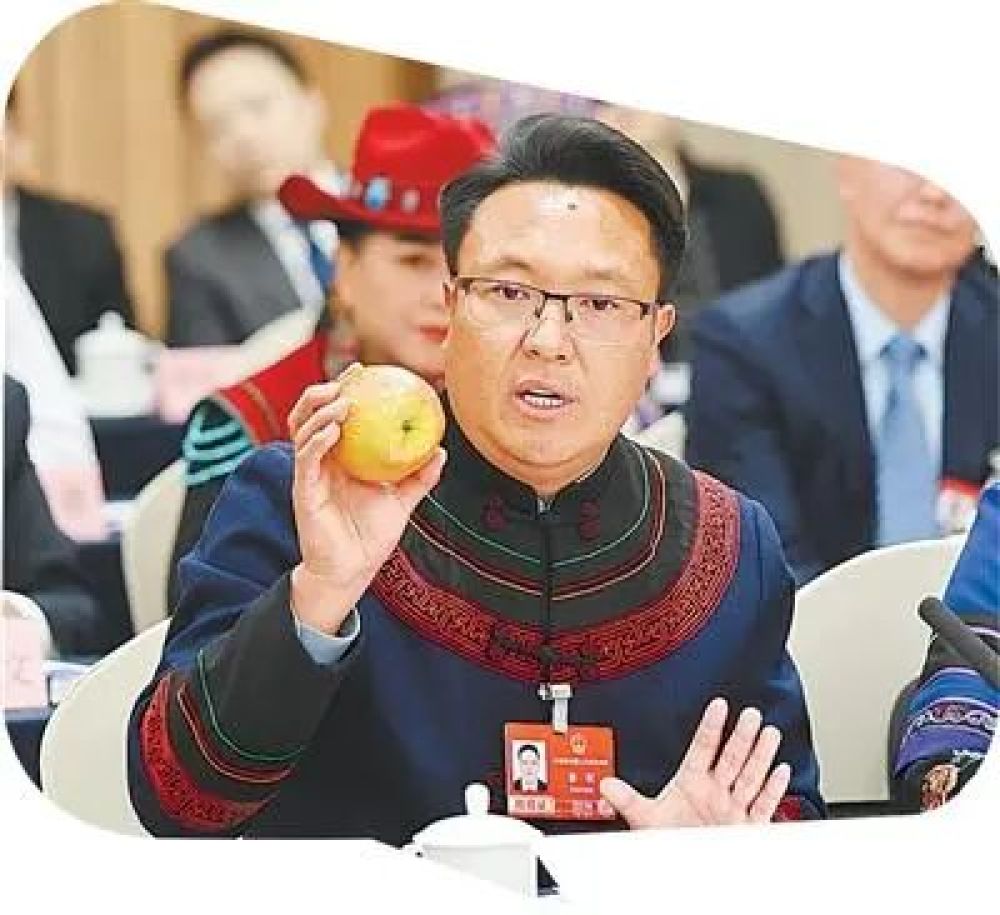 “老鲁呀,在场这么多人,你带两个苹果可不够!”会场上,有代表开玩笑,逗得大家噗嗤一笑。