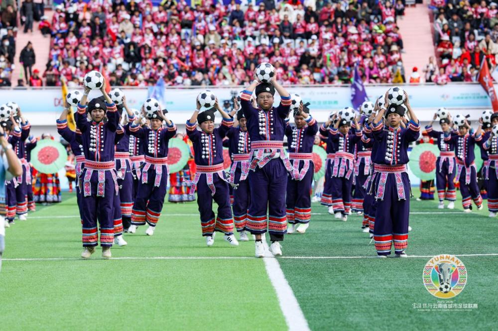 这场燃遍云岭的足球热潮,更因赛场之上的竞技魅力与赛场之下的人文温度,成为凝聚云南各民族同心同行的精神纽带。赛场上,各地球员全力以赴,奋勇拼搏,以专业的竞技表现不断提升滇超联赛的赛事水平,让足球的竞技之美在云岭大地绽放;赛场下,十六个州市各民族同胞同心同庆,共赴热爱,迪庆的多民族歌舞、普洱的“石榴花开”街舞队形,将民族团结的正能量融入每一场赛事,让足球赛场成为展示云南民族团结进步的重要窗口。