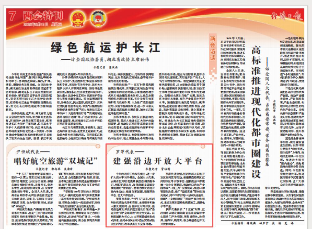 罗萍代表介绍,红河州深入实施开发区振兴三年行动,做强蒙自经开区红河综保区等开放平台,创新提出口岸腹地一体化发展思路,推动河口沿边产业园形成“一园三片”发展模式,推进口岸智慧化改造,推广“运抵直通”等快捷通关模式,河口口岸实现10分钟快速通关,创新“一企两国两厂”跨境产能合作模式,重点发展东盟特色商品加工、消费电子等产业。