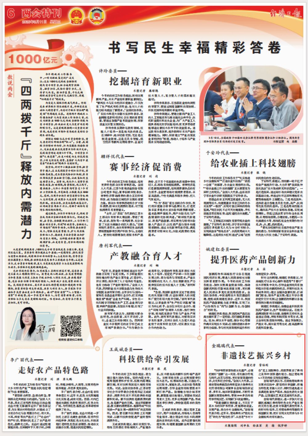 “非遗创新发展的意义,不仅在于其本身的保护和传承,更能带动就业、发展产业,助力乡村全面振兴。”金瑞瑞代表介绍,近年来,楚雄彝绣从“指尖技艺”转化为“指尖经济”,从古老“乡村T台”走上国际舞台,向世界展示了彝绣之美和中国非遗的魅力,也让楚雄州6.2万名绣娘实现稳定增收。