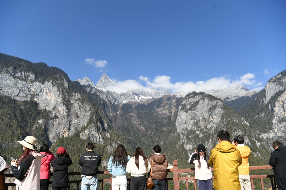 游人在巴拉格宗景区打卡拍照。(丽江融媒记者 赵庆祖 摄)
