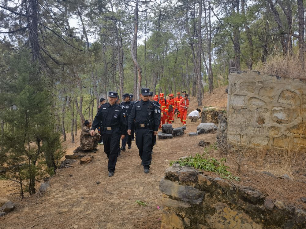 公安和专业扑火队联合开展武装巡护。(市应急管理局火灾科供图)