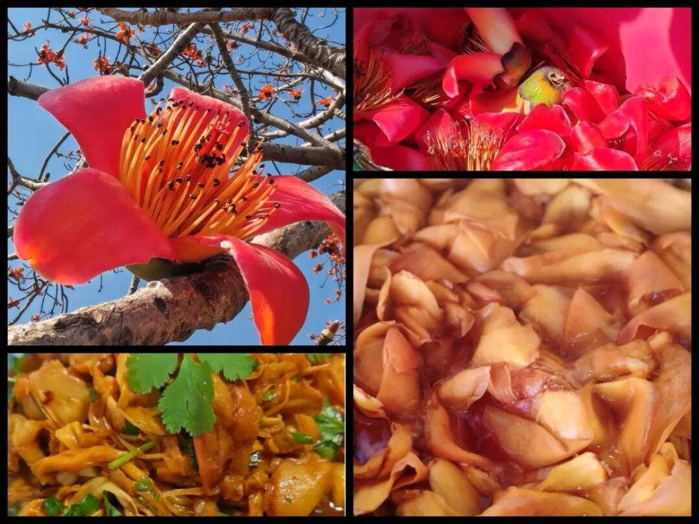 木棉花:别名攀枝花,又称英雄花。除了具有极高的观赏价值外,木棉花还可以满足大家的味蕾,或凉拌、或煲汤、或烹炒,变成餐桌上一道道佳肴。