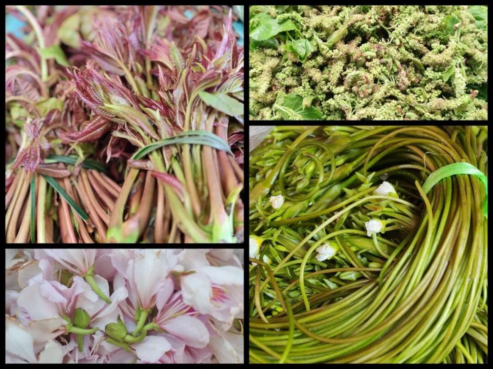 立春过后,当春风拂过山岗,各类烂漫春花或挂满枝头、或带着清香冒出泥土。走进县城农贸市场,蔬菜摊上一片春天的景象——金雀花、棠梨花、木棉花、鼠米花……琳琅满目,顾客们轻车熟路地挑选,把大山的馈赠变成带着露水和山野味道的春宴。