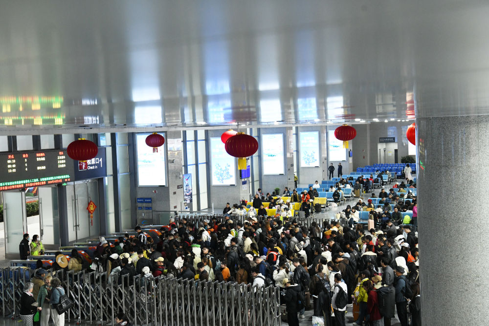 旅客在丽江火车站准备乘车。(丽江融媒记者 赵庆祖 摄)