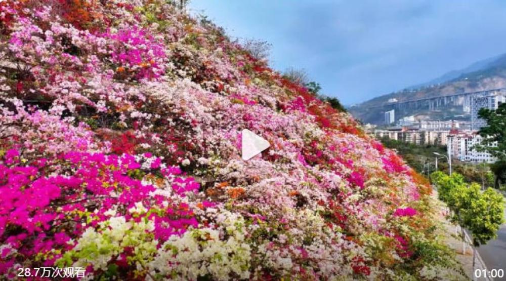 春风拂过金沙江畔,云南昭通巧家县城的三角梅如约盛放。街头巷尾,红粉橙白的花簇如云霞铺展,如彩瀑倾泻,热烈绚烂。