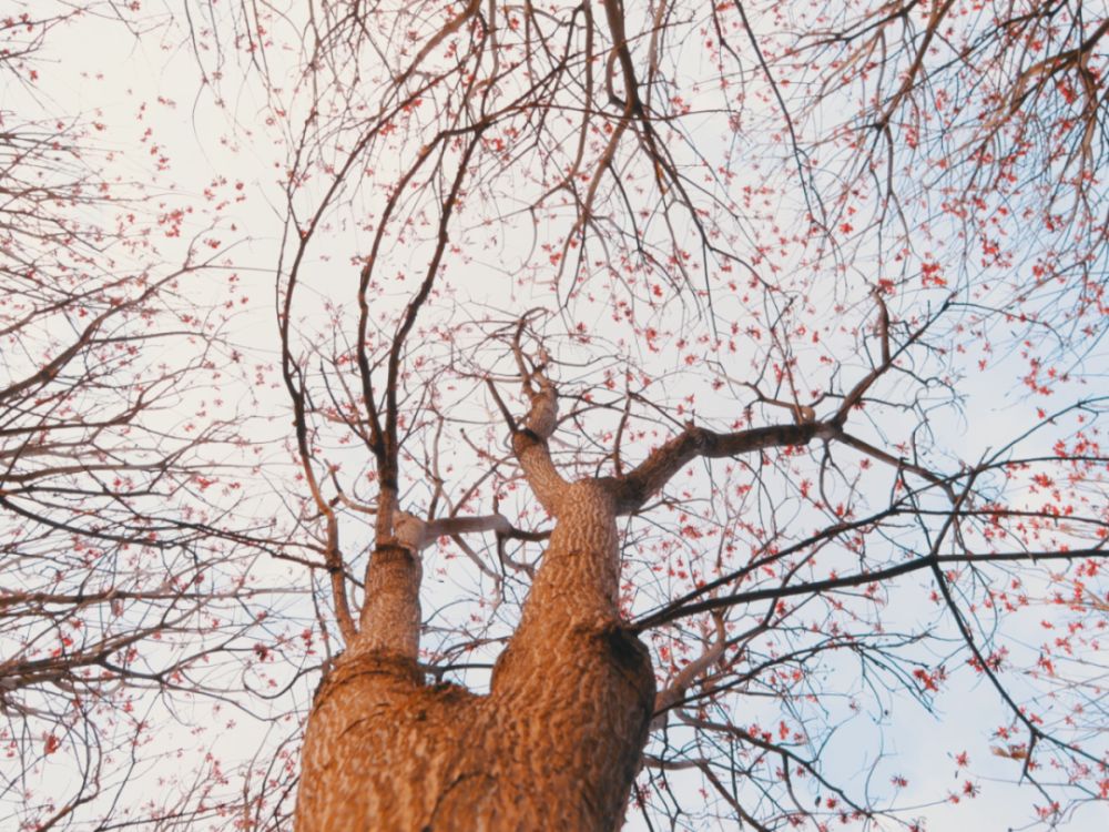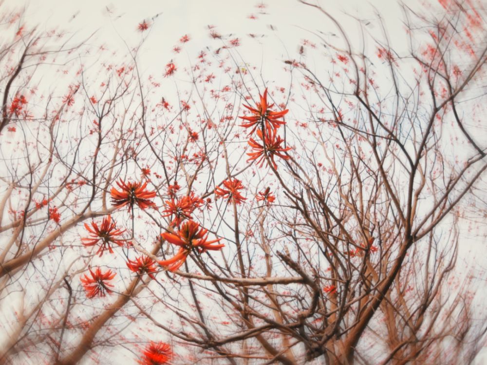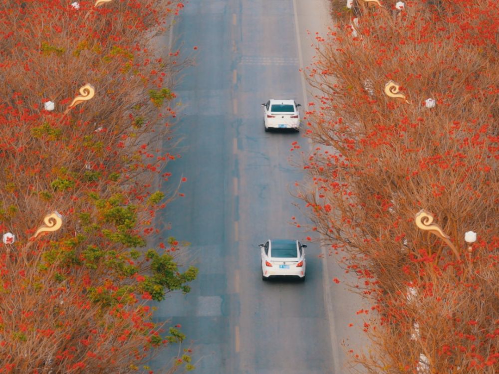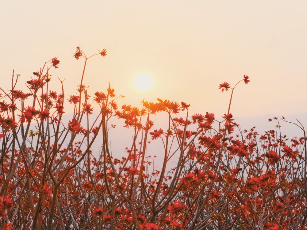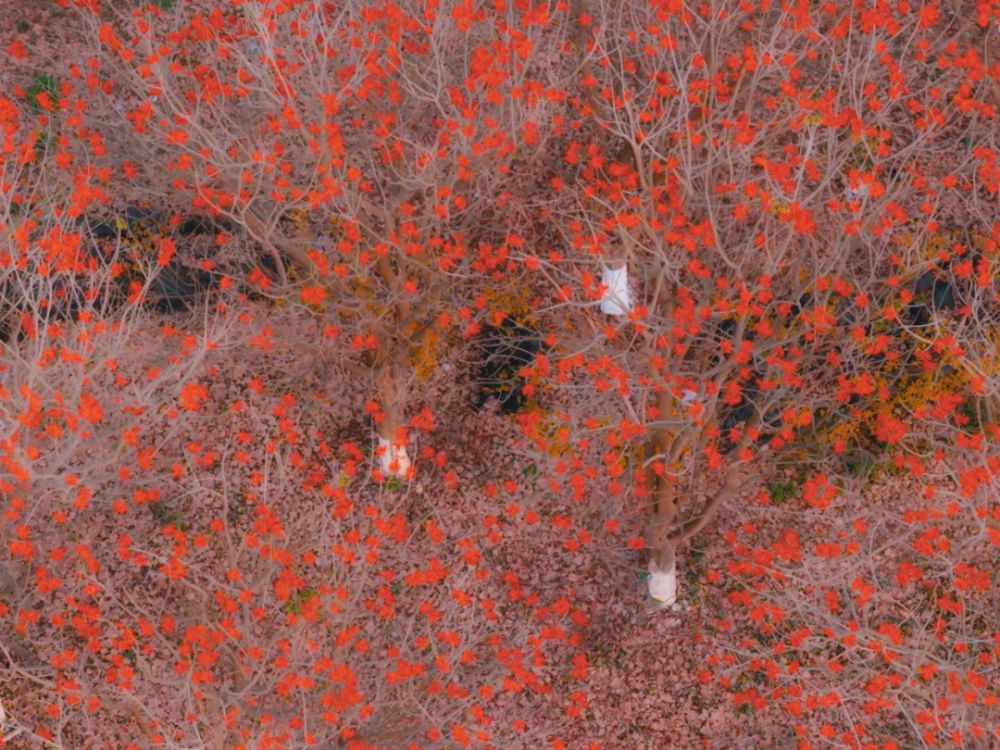 在澄澈蓝天的映衬下,明艳得动人心魄