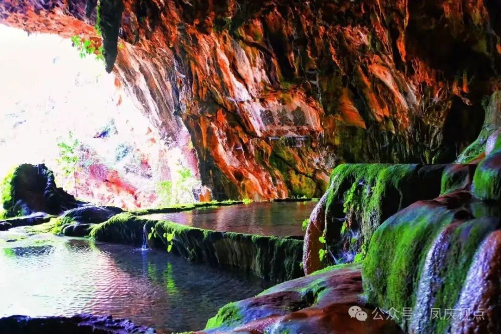 雍正《顺宁府志》记载的“顺宁十景”之一的琼英洞,以“险、秀、奇、绝”闻名。洞口深藏南山峭壁之下,绿树成荫,险象环生;洞内石田连片,如皱纹细碎,似水池圆润,皆是雨水经年浸溢的奇迹;洞内钟乳石琳琅,如浆凝固,或地上耸立,或洞顶倒悬,奇崛壮观;行至深处,两条小河从岩壁涌出交汇,水声潺潺,宛如仙境。洞壁留存着明嘉靖年间“琼英洞天”石刻,距今近500年,历史印记厚重。琼英洞,不仅是一个自然奇观,更是一段红色历史的见证地。洞内的天然大厅,仿佛还回荡着1950年至1953年剿匪征粮的壮烈记忆。游客在溶洞探秘中感受自然之奇的时候,亦可在缅怀先烈中汲取力量,在红色传承中读懂琼英的精神内核,让旅居之旅兼具诗意与厚重。