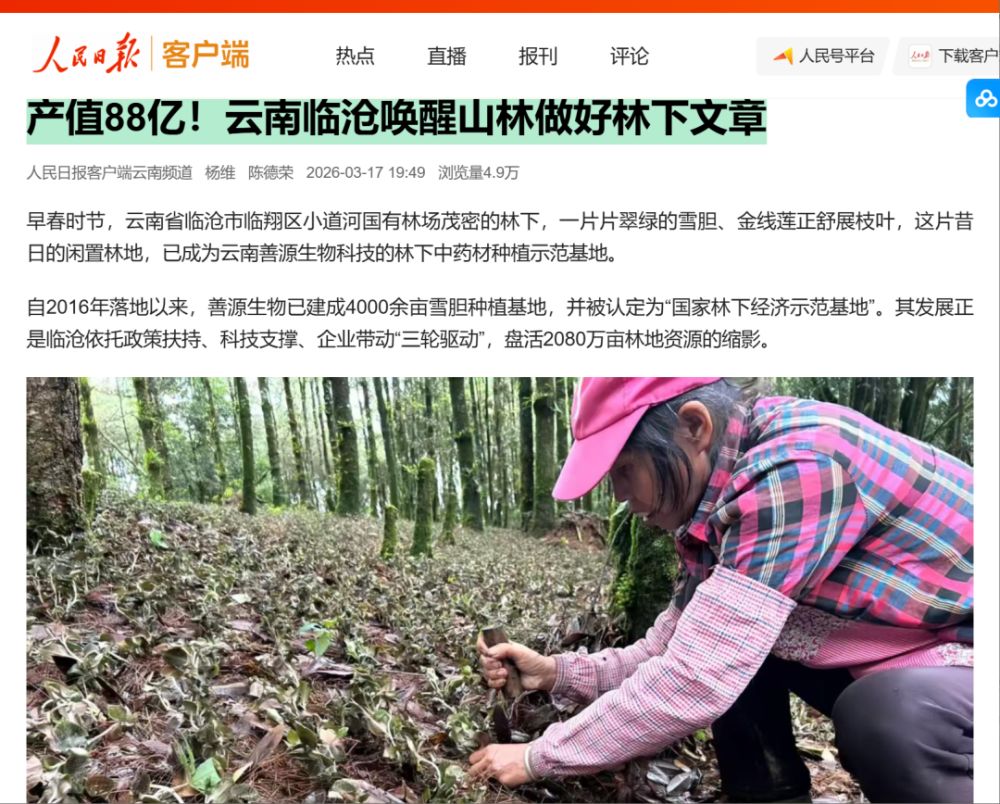自2016年落地以来,善源生物已建成4000余亩雪胆种植基地,并被认定为“国家林下经济示范基地”。其发展正是临沧依托政策扶持、科技支撑、企业带动“三轮驱动”,盘活2080万亩林地资源的缩影。