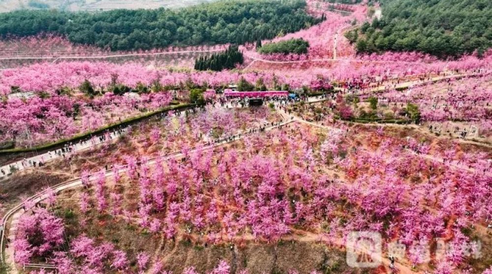 除了鲜切花、订单农业,马龙区还深挖花卉文旅价值,推动“赏花经济”与文旅产业深度融合,擦亮“旅居马龙”品牌。盛夏时节,通泉街道杨官田社区土瓜冲居民小组千亩绣球花盛放山谷,花海观光、鲜花采摘、干花销售等业态同步发力,带动餐饮、零售等配套产业红火发展;每年3月,沈家山樱花谷400余亩樱花次第绽放,粉色花海吸引大批游客打卡,昔日的自然风光成功转化为“美丽经济”,带动民宿、餐饮等业态提质增效,实现“生态美”与“百姓富”同频共振。