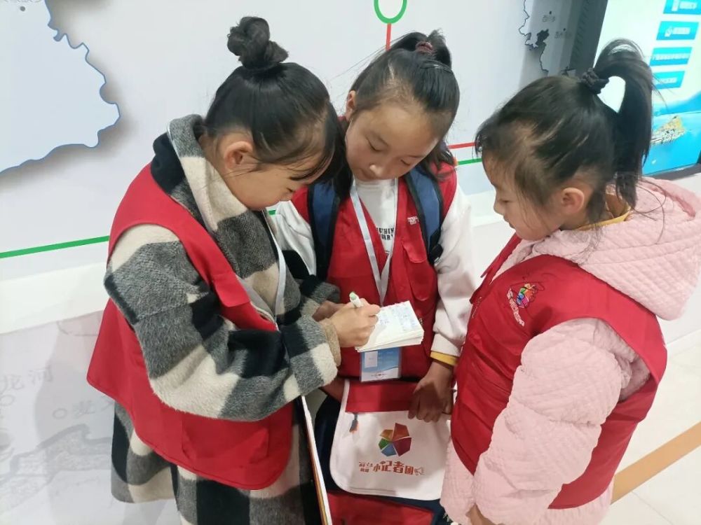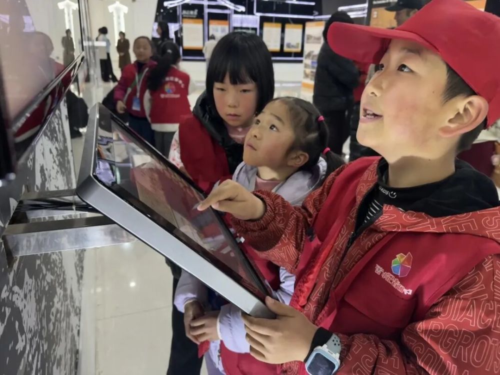 丽江融媒小记者在讲解员的引导下用心聆听丽江发展故事。 (丽江融媒记者 张丽瑶 摄)