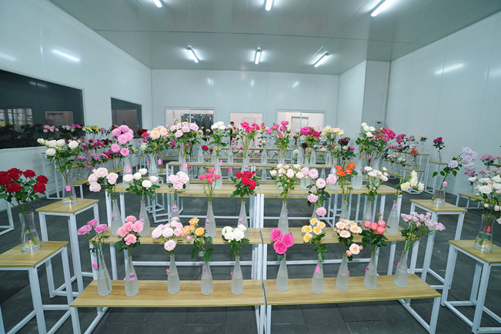 数据最有说服力:200—300枝/平方米/年,部分高产品种可达350枝/平方米/年,A级、B级花占比超过55%,与荷兰顶尖温室持平。 “减配置并未降品质。压减的投入,就是花农的收入。”蔡艳飞说。