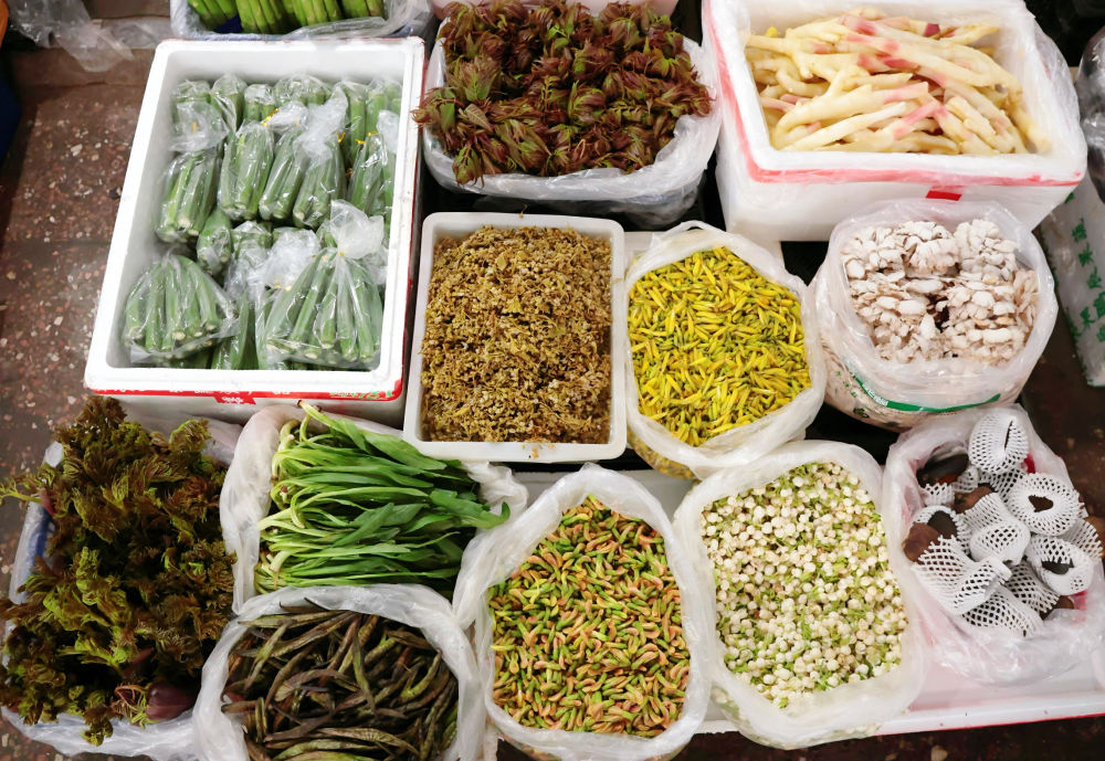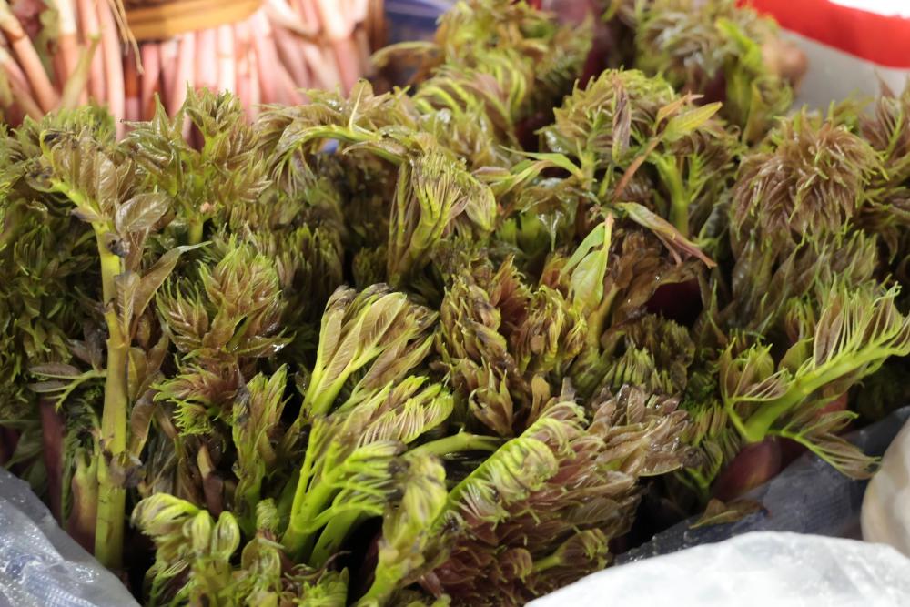 走进沾益区的小农贸市场,仿佛置身于一场春日的“味觉盛宴”。色泽鲜亮的香椿、卷曲如拳的刺老芽、金黄簇簇的金雀花等各式各样的山野菜占据市场“C位”,价格从20元到200元不等,吸引众多市民前来选购,现场一派热闹景象。