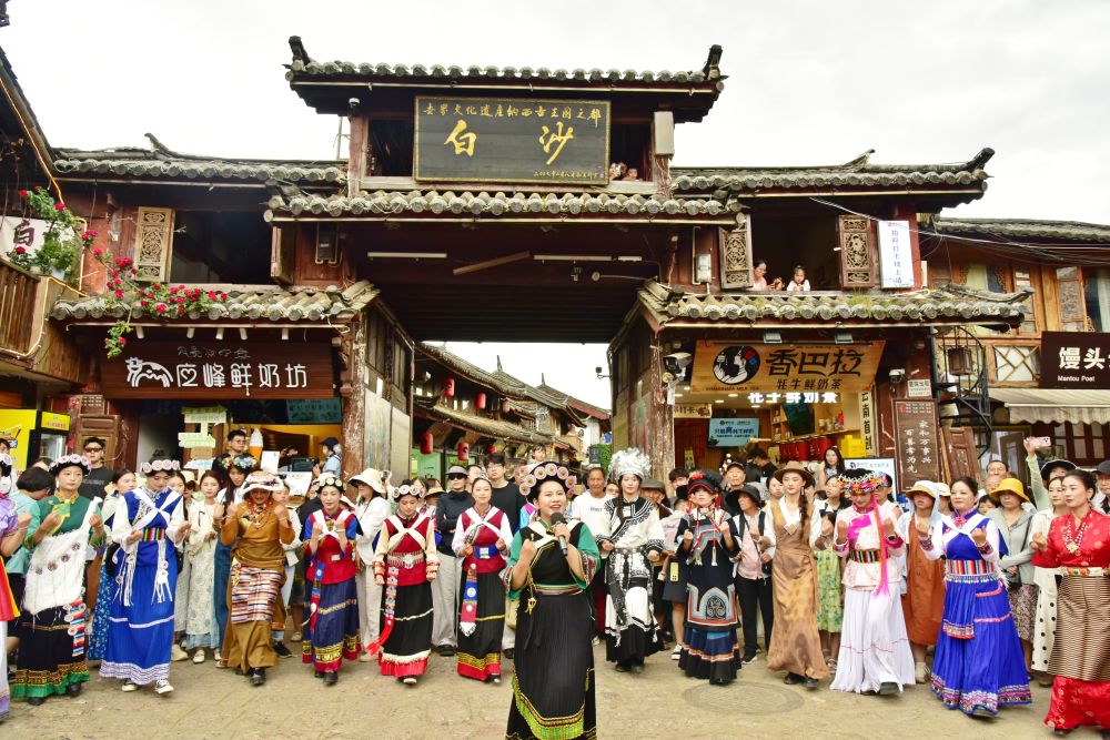市民在玉龙县白沙古镇载歌载舞。(丽江融媒记者 李琳 摄)