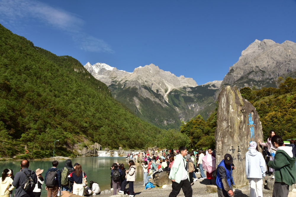 蓝月谷游人如织。(丽江融媒记者 李琳 摄)