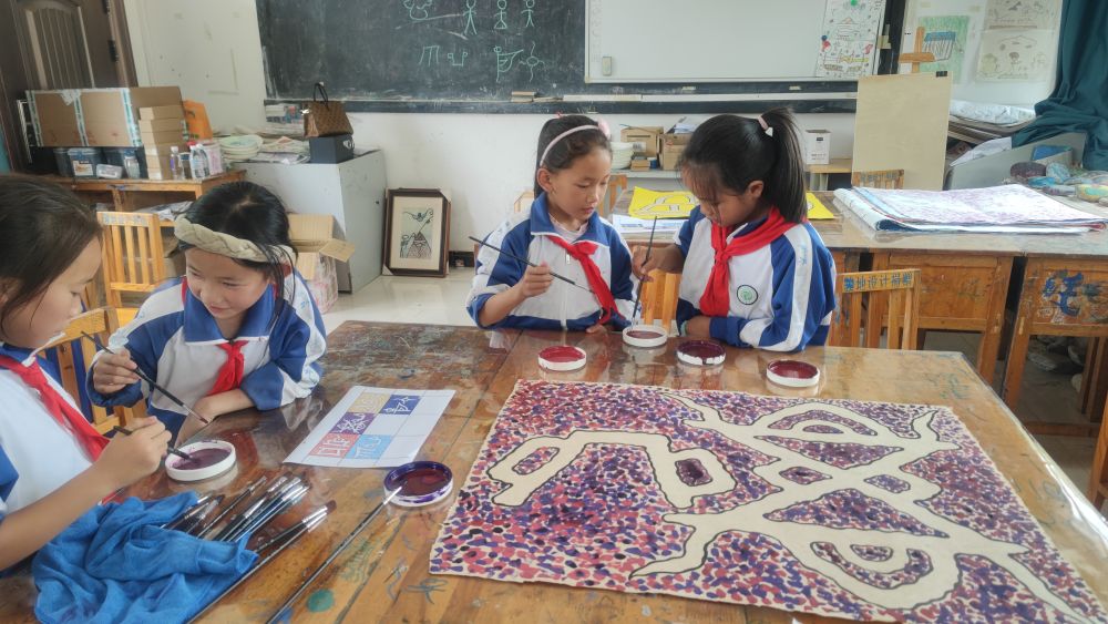玉龙县白沙完小的东巴绘画课堂。(丽江融媒记者 侯玮 摄)