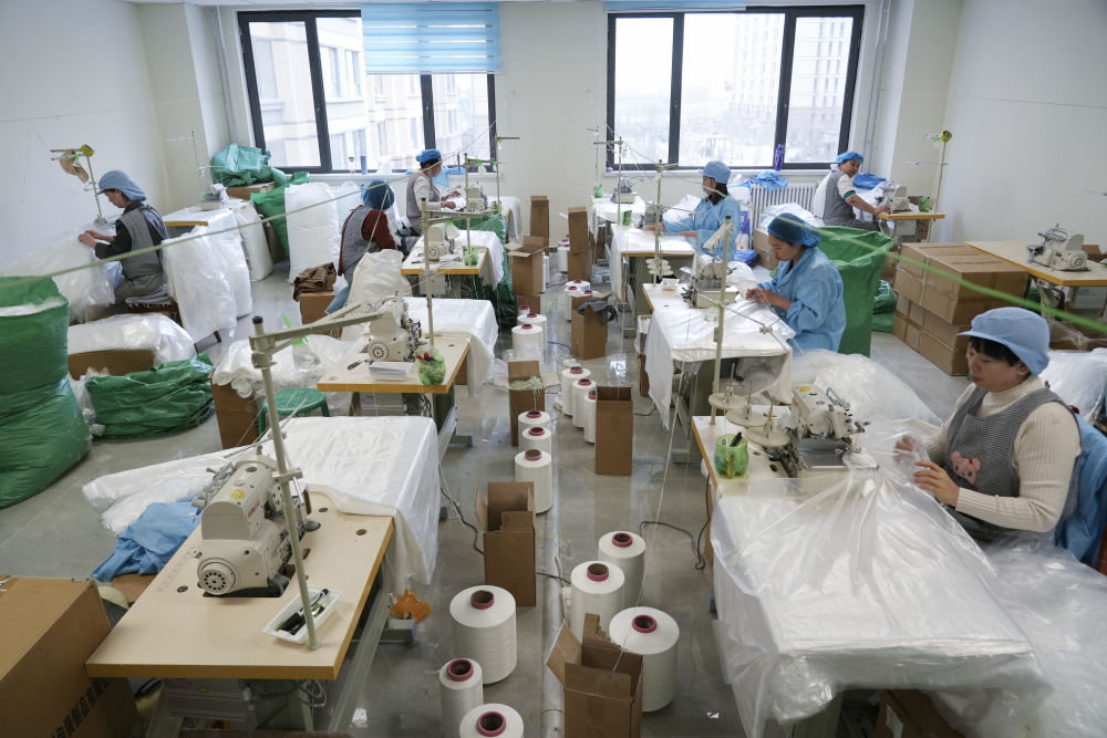 2025年3月27日,回迁居民在雄安新区雄东片区“雄业创工坊”塑料包装工坊中工作。该工坊充分利用雄县传统特色产业优势,同时结合雄东片区居民生产生活特点,引入有持续发展潜力、对社区环境影响较小的产业,为回迁群众提供灵活多样的就业岗位,让回迁居民实现“上楼安家,下楼就业”。
