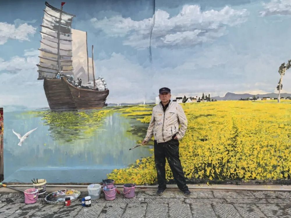 这是李昆武第二次住进杜曲村,2023年春天,他在村里的墙壁上创作了众多墙画,其中那幅《滇池母亲》早已出圈,成为不少人必到的打卡之地。