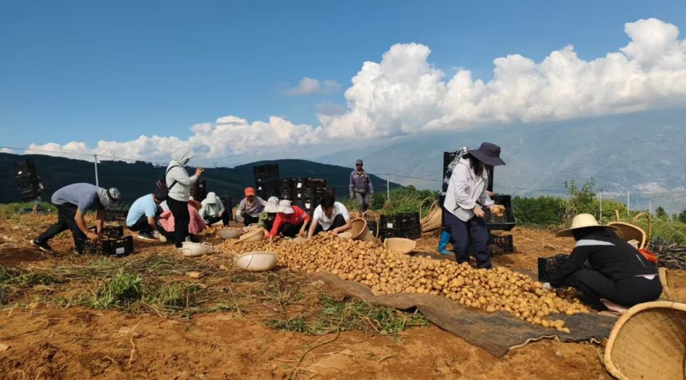 开花洋芋破局:“土豆”变身“金豆”,树立产业标杆。“东川开花洋芋”作为当地特色农业核心品类,凭借独特口感与品质优势,借力科技赋能、品牌引领实现跨越式转型。当地推行“三带促三变”策略延伸产业链,培育2家新型农业经营主体、9家专业合作社,搭建起稳定高效的联农带农机制,既夯实了种植根基,又为后续文旅体验、电商销售打造了核心爆款产品。2025年,全区开花洋芋种植面积达4.3万亩,总产值突破2.064亿元,亩均效益4500元,带动2.45万群众人均增收500元,成为高原特色农业提质增效的典范,也为东川农特产品打响了首张名片。