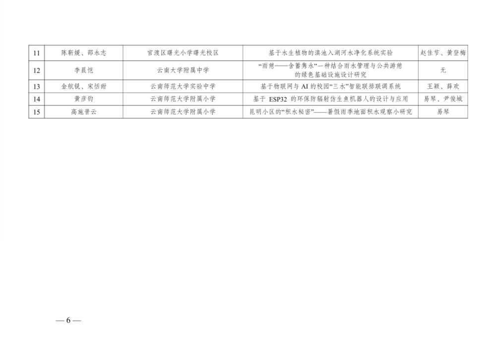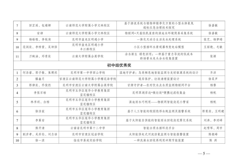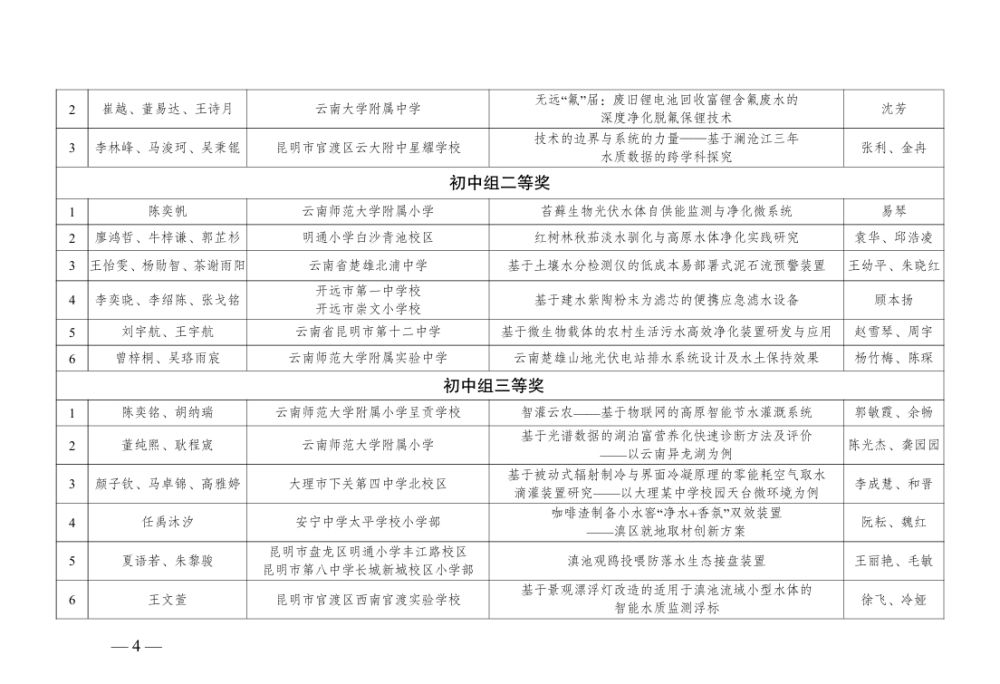 为贯彻《全民科学素质行动规划纲要(2021-2035年)》,推动落实《中共中央 国务院关于深入打好污染防治攻坚战的意见》《国务院关于实行最严格水资源管理制度的意见》的相关要求,2025年12月至2026年3月,云南省生态环境宣传教育中心联合云南省青少年科技中心,组织开展了第二十三届全国中学生水科技发明比赛暨斯德哥尔摩青少年水奖云南省选拔赛。本次选拔赛共征集作品101件,经严格初审、现场路演及答辩,共选出获奖作品40件,获奖作品指导教师获得优秀指导教师奖,并根据州(市)、县(市、区)或学校提交作品质量及数量设优秀组织奖。本次赛事评选出的获奖作品将推荐参加全国比赛。
