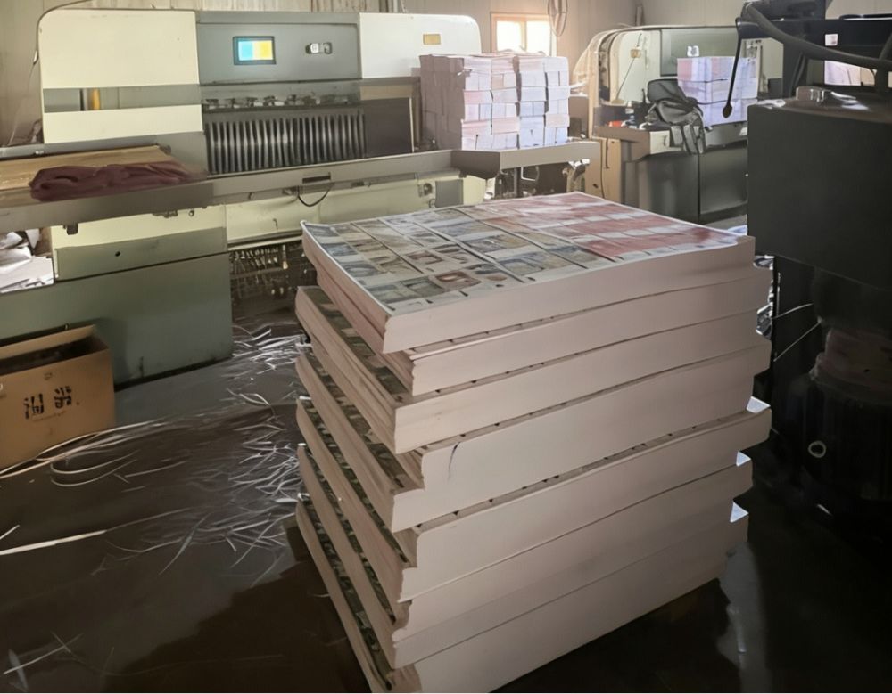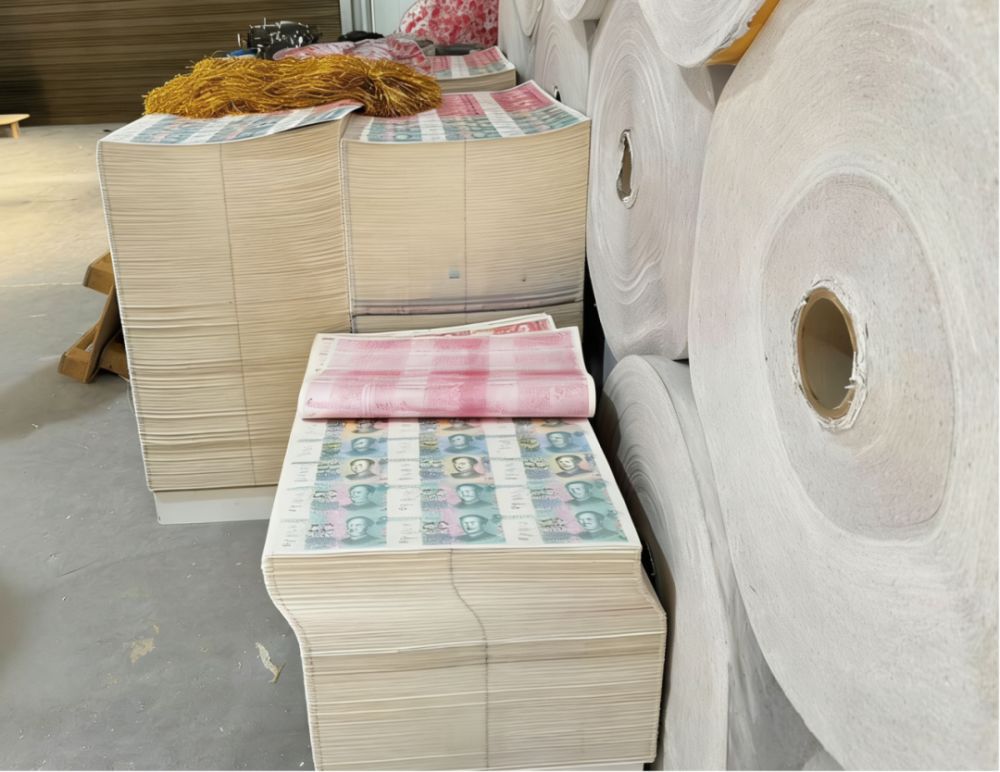 案情简介:2024年12月,中国人民银行渭南市分行联合大荔县市场监管局,对某商贸公司开展联合执法,现场查获大量“人民币版”冥币成品、半成品及印刷模板。