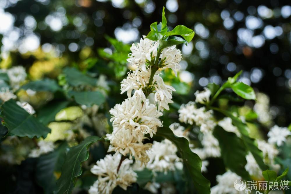 三月,瑞丽连日阴雨消退,雨过天晴。云南省德宏热带农业科学研究所咖啡园内,吸足水分的咖啡树迎来集中盛花期。园内咖啡花次第绽放,淡雅清甜的花香弥漫田间,春日生机与咖啡产业发展活力相融共生。