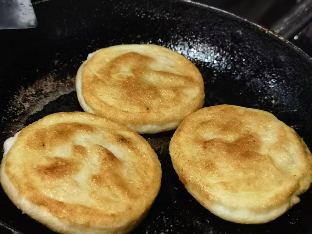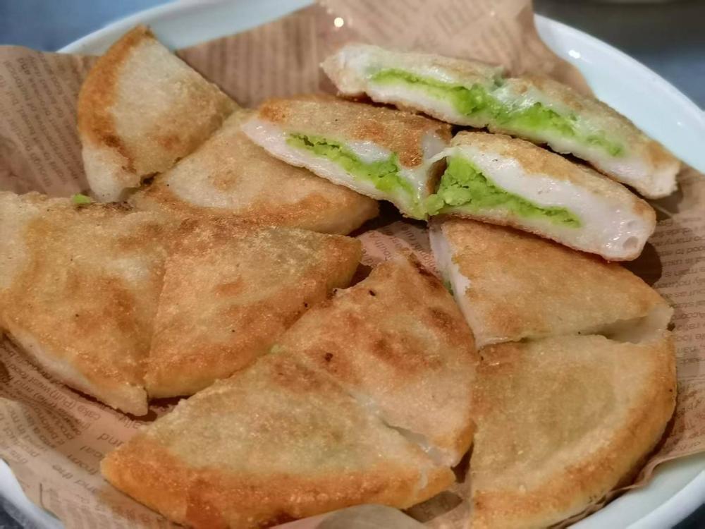 洗净的青豆上蒸笼,大火蒸至软烂,再拌入白糖调制成馅。外皮选用发酵好的吊浆面,口感更显润滑绵密。把香甜软糯的馅包入面皮,精心捏揉成型,随后入锅小火慢煎,适时翻面,让外皮煎至金黄酥脆,内里依旧软糯如初。几分钟后,热气腾腾的青豆粑粑便出锅了,一口咬下,豆香与甜香在口中交融,瞬间唤醒通海人刻在骨子里的童年记忆。