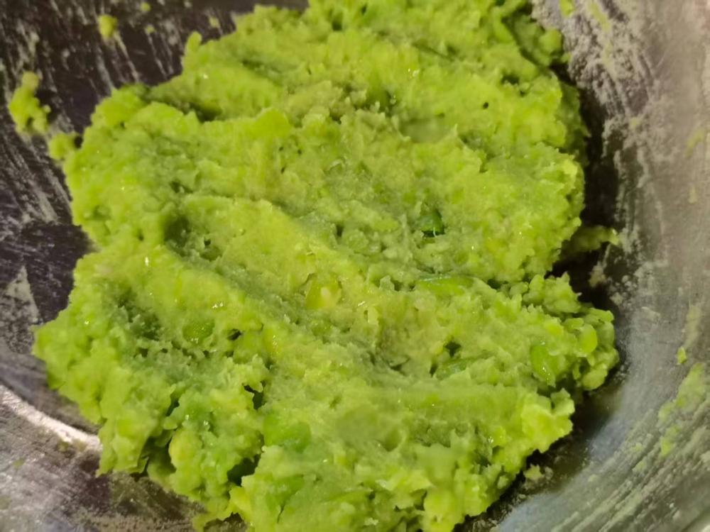 在通海人的口中,蚕豆粑粑还有个亲切的名字 —— 青豆粑粑,也叫豆米粑粑。食材看似简单,却藏着独一份的风味秘诀。需挑选新鲜采摘、老嫩适中的蚕豆,细心剥去内外两层外壳,挤出莹润饱满的青绿豆米,每一步都藏着对食材的讲究。