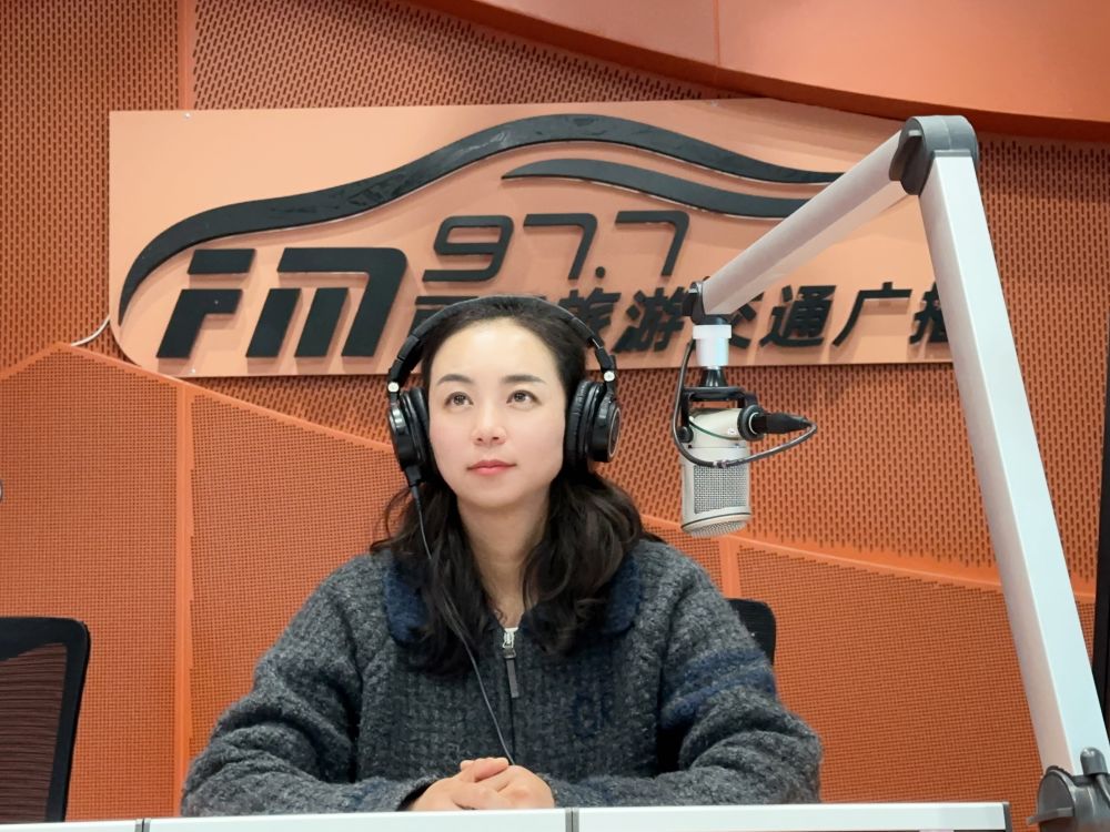 4月3日,丽江市退役军人事务局烈士陵园管理所所长和丽娟,做客FM97.7丽江旅游交通广播直播间。(丽江融媒记者 杨超 摄)