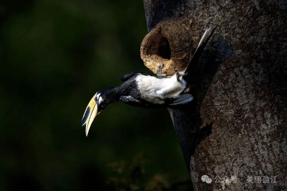 3月30日,封巢基本完工。在接下来的三个多月时间内,雌鸟将在“暗无天日”的巢洞内独自孵化幼鸟,而雄鸟则承担起每天给雌鸟和幼鸟“送饭”的任务。这期间,倘若雄鸟在外遭遇不测,雌鸟和幼鸟将可能活活饿死在巢洞内,这也让我们深深感叹大自然的神奇和母爱的伟大。