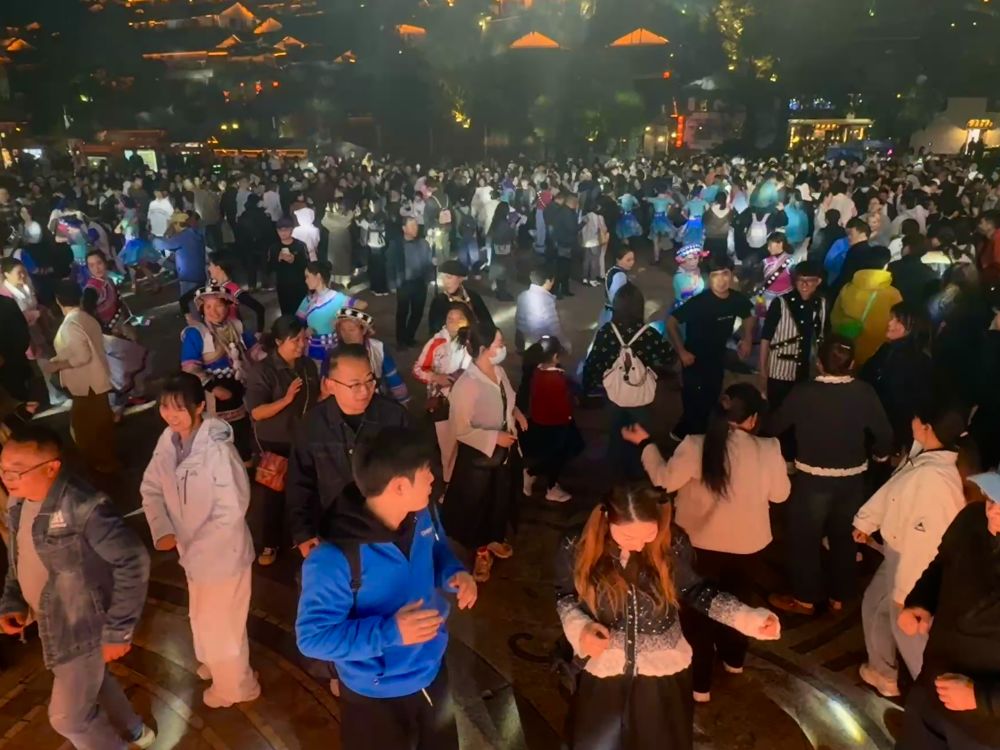 活动现场,欢快的节奏瞬间点燃了气氛。在怒江演员的热情召唤下,来自五湖四海的游客纷纷放下拘谨,主动走进人群中央,手拉手围成一个个不断扩大的同心圆。伴随着音乐节拍,大家拍手、踏脚、旋转,在欢声笑语间感受着民族文化的独特魅力。“丽江风景很美,氛围很好,从来没有感受过如此热闹的现场,太尽兴了!”来自贵州的游客王伟兴奋地说。北京游客张静说:“现场氛围特别好,让人不自觉就融入进来。在丽江还能感受到怒江的风土人情,既开心又激动。”