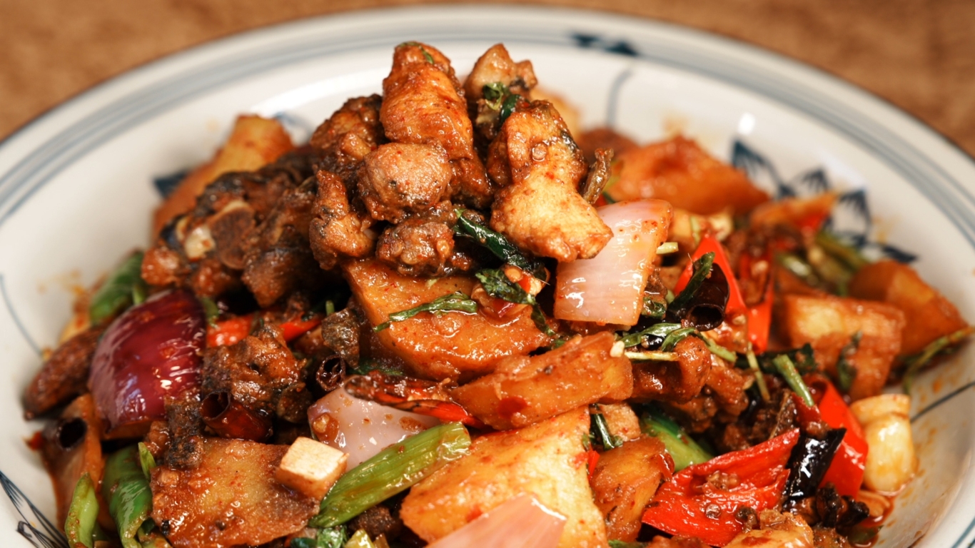鸡肉软烂脱骨,浓郁的傣家香料味渗透其中,酱汁醇厚鲜香,拌上米饭能连吃好几碗,妥妥的下饭硬菜。