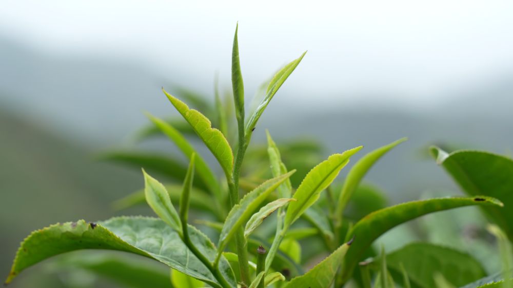 茶芽在云雾中舒展