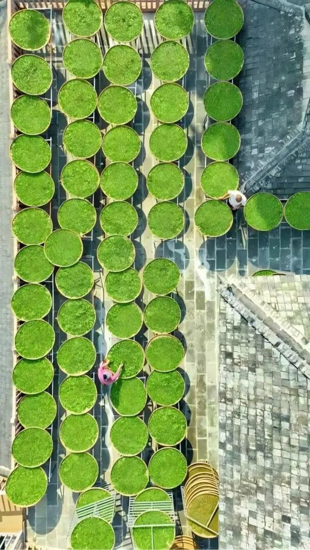 用传统的方式日晒毛茶。王毅 摄