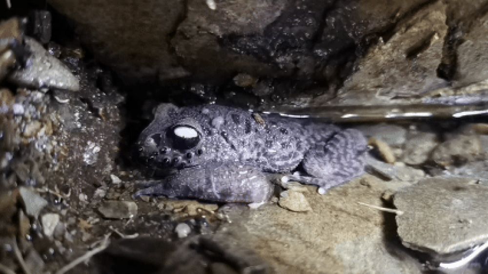 因其雄性上唇缘有排列不规则的黑色角质刺,哀牢髭蟾被称为“胡子蛙”,是锄足蟾科髭蟾属的两栖动物,主要分布于云南哀牢山与无量山海拔2200米至2600米、生态环境保存完好的常绿阔叶林林下及山溪中。