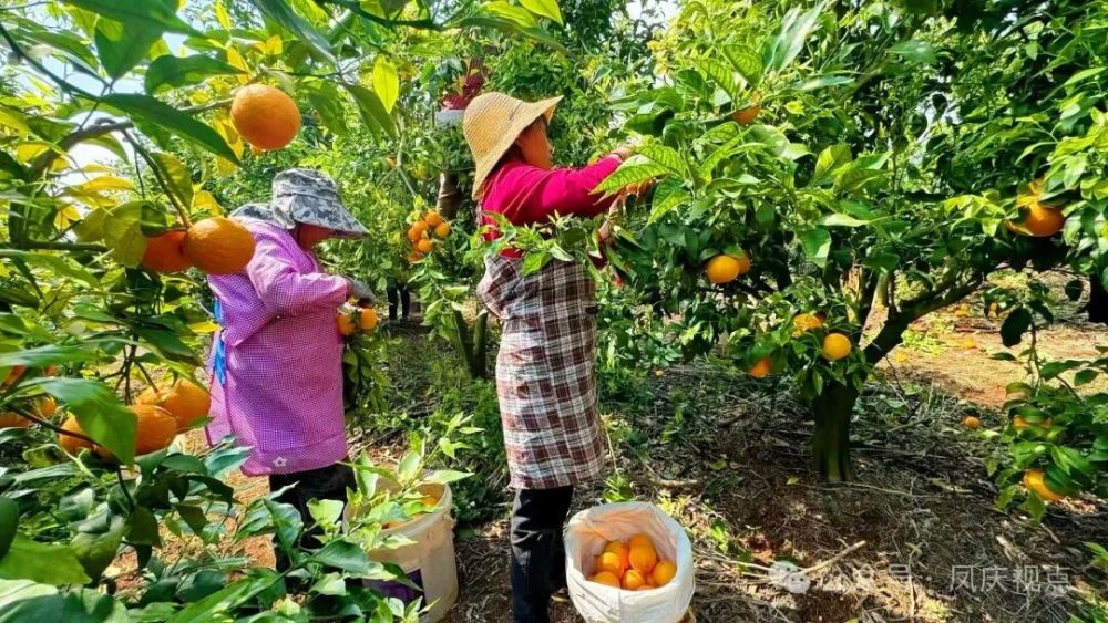 时下,走进凤庆县营盘镇秀塘村万亩沃柑种植基地,漫山遍野的果树上,一颗颗圆润饱满的“金果子”缀满枝头,在阳光的照耀下泛着诱人的光泽,空气中弥漫着清甜的果香。村民们穿梭林间,采摘、装筐、搬运,一派繁忙的丰收景象。