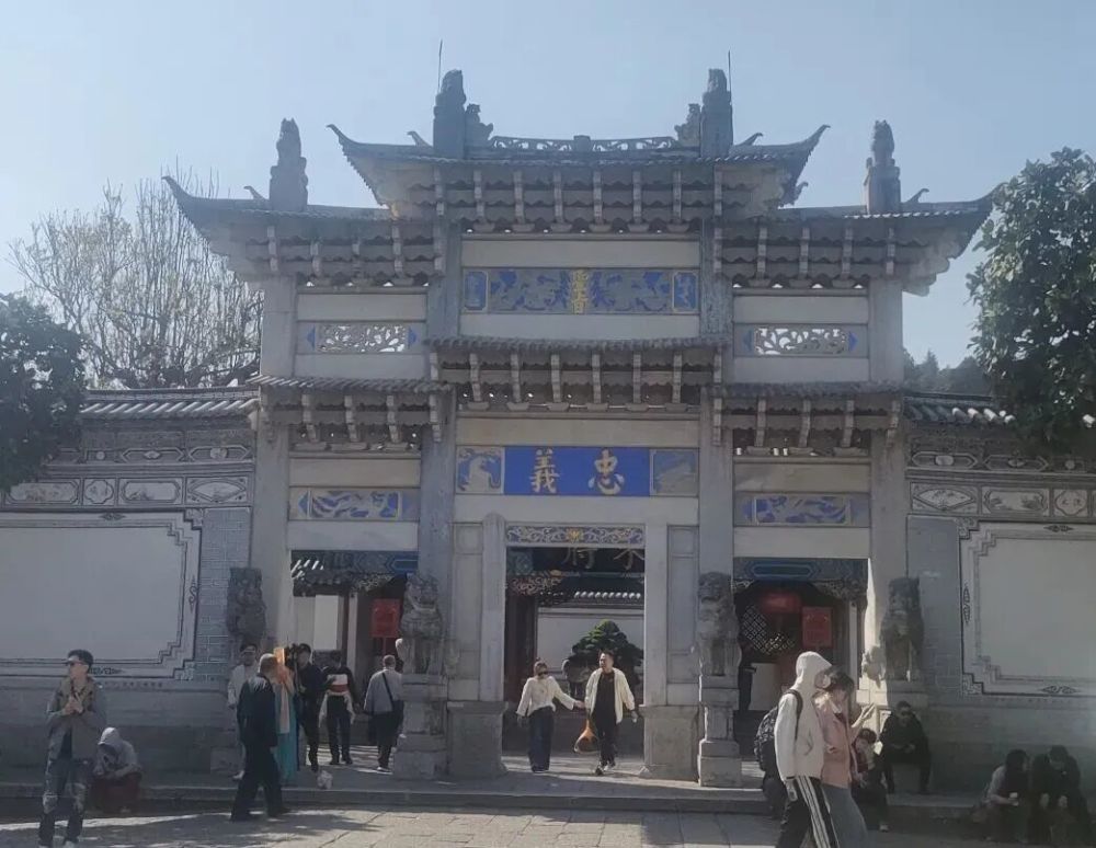 忠义坊是木氏土司的王权象征,也是“忠义土司”的集中表现。明末土司木增与朝廷的关系非常密切,从万历四十六年到四十八年,每年都派人进京进贡,“军前买马”。《木氏宦谱》中这样记载:“(万历)四十六年,自备马匹方物,差人赴京进贡,恭庆圣寿。钦赐及妻纻丝、彩缎、钞罗、表里、靴袜等项,并请给镇边敕一道。本年辽阳大警,饷银一万解京,户部移咨兵部具提,蒙圣旨刊载始例,通行天下;蒙吏部复题,钦加三品服色……四十八年,助银一千二百两解京,军前买马,蒙钦赐‘忠义’”。为此,木增专门修建“忠义”石牌坊,以彰显自己的尽忠报国之心。史料记载,这座牌坊“高数丈,栋梁斗拱,通体皆石,坚致精工,无与敌者。”建筑学家刘敦桢描述其主体结构为:“坊三间四柱六楼,明间面较巨,其柱与楼亦较次间为高,柱皆通天式,以狮鱼及抱鼓石自前后夹持。每间于龙门枋及额坊上施绦环及楼间各二层。下层之楼仅为前后坡顶,上层改为庑殿顶,且将山面之檐,绕至柱外,为最鲜见。檐下斗拱,下层二跳,上层三跳,皆具斜拱,又于跳头上置三幅云,与当时明建筑作风大体符应。”这座石牌坊是木氏土司府衙的门面,既有建筑美学上的价值,又有政治含义,彰显了历代木氏家族与中原王朝的紧密关系。