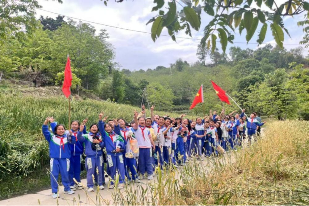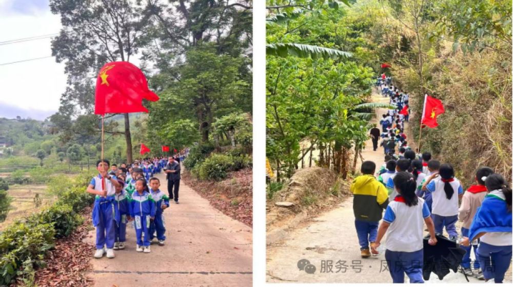 同学们整装出发、列队前行,精神抖擞地沿着田埂、茶园与林荫小道稳步前行,一路春光满目、笑语盈盈。即便偶遇春雨,也丝毫没有消减孩子们的热情,反而增添了别样乐趣,大家结伴同行、相互鼓励,在徒步中舒展身心、锤炼毅力,脸上洋溢着开心与激动的笑容。