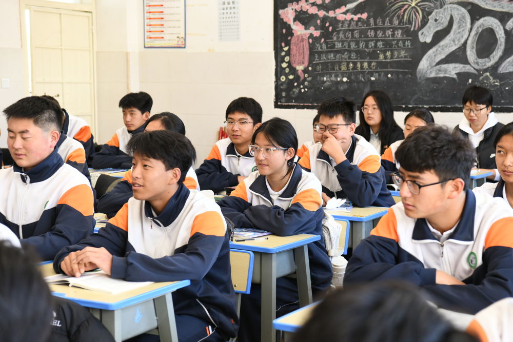 玉龙中学师生在聆听两会精神宣讲。(丽江融媒记者 赵庆祖 摄)