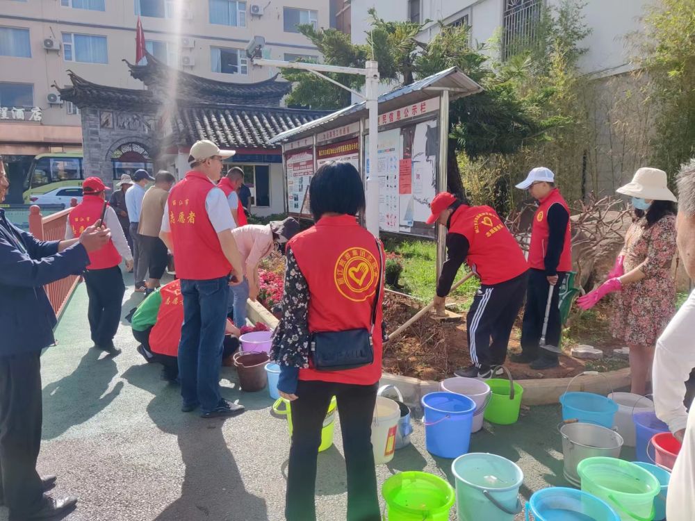 寨后社区组织辖区内党员、志愿者、居民在辖区黄土裸露花坛内种植绿植。(寨后社区供图)