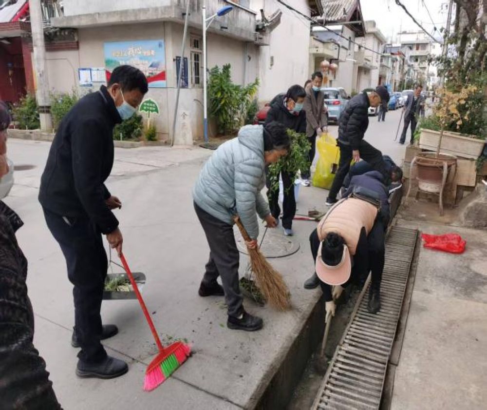 辖区内居民开展迎新春爱国卫生活动。(寨后社区供图)