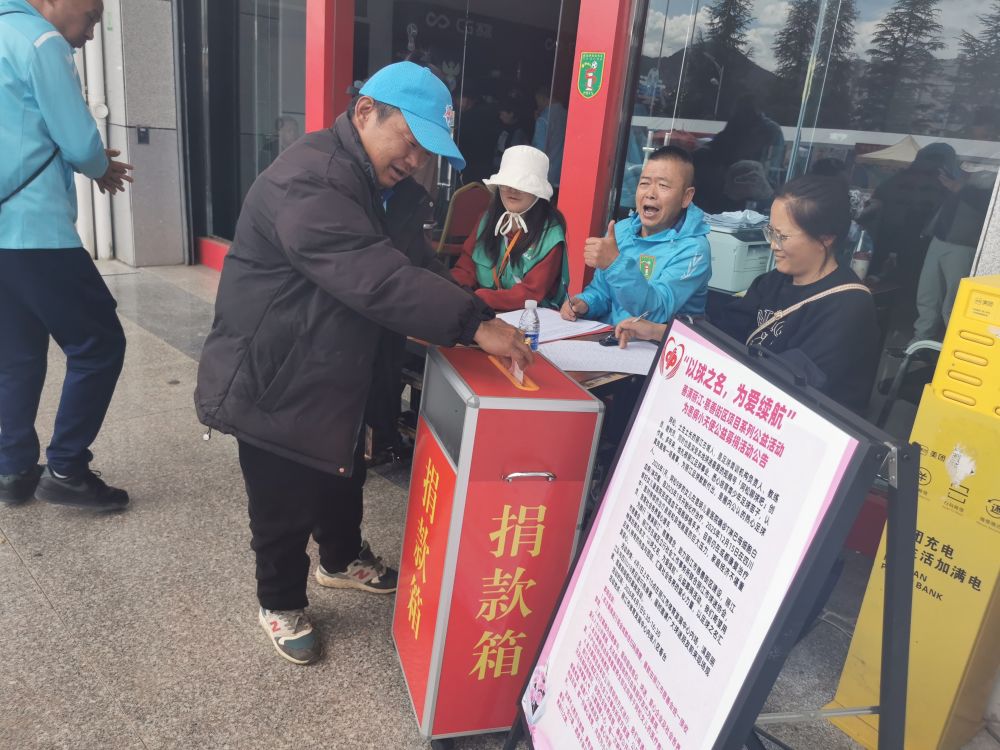 丽江市球迷协会线下募捐现场。(丽江市球迷协会 供图)